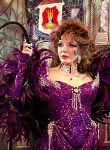 According to Joan Collins it was her close friend and pantomime veteran Christoper Biggins who talked her into making her pantomime debut in Dick Whittington playing Queen Rat at the Birmingham Hippodrome in 2010. Joan made her first panto appearance alongside lifelong fan Julian Clary and actor Nigel Havers aswell as the late Keith Harris and panto dame Jeffrey Holland. Joan is most famous for playing superbad Alexis in Dynasty, back in the outrageous eighties. She injected that Alexis attitude into her new role. “As Queen Rat, I am an absolute monster,” she said. “It’s a part that I know how to play very well. Panto is about being much larger than life, and I’ve no trouble with that at all. I come from a theatrical family,